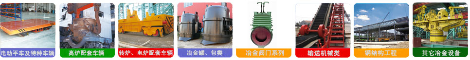 公司產(chǎn)品有ZT系列鐵水罐車、鋼包車、渣罐車、渣盤車、電動平車、過跨車、鐵水稱量車、液壓傾翻車、廢鋼料籃車、中間罐車、修爐車、爐底車、鎳鐵礦熱爐料罐車、汽運鐵水車以及各種鐵水罐(包)、鋼水包(罐)、渣罐、渣盤、中間罐、鋼包加蓋、龍門吊鉤、鋼包傾翻機、鋼包回轉(zhuǎn)臺等產(chǎn)品。
